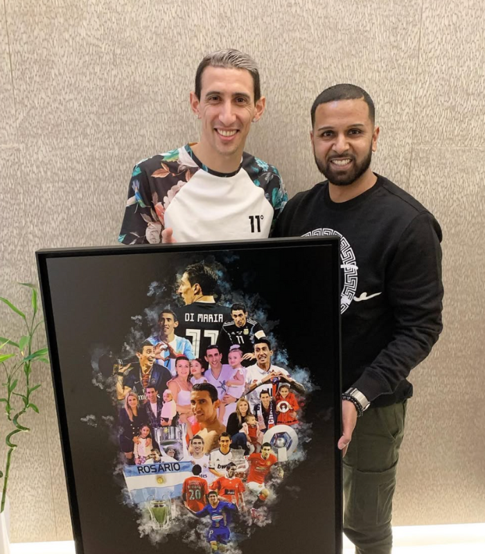 Son art a conquis de grands noms du football comme Angel Di Maria, Leandro Paredes et Houssem Aouar, qui ont été séduits par son approche artistique distinctive. Kamal ne se contente pas de peindre des portraits, il raconte une histoire, celle d’une carrière, d’un moment d’émotion, d’une passion sans limite.