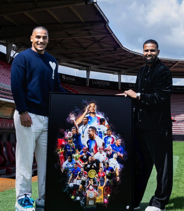 Originaire d’Angers, Kamal Hill s’est fait un nom dans le monde de l’art en alliant peinture, dessin digital et photographie, sublimés par des touches d’acrylique sur papier d’art. Depuis 2019, il met son talent au service des sportifs, capturant leur intensité, leur détermination et leurs victoires dans des œuvres vibrantes et dynamiques.